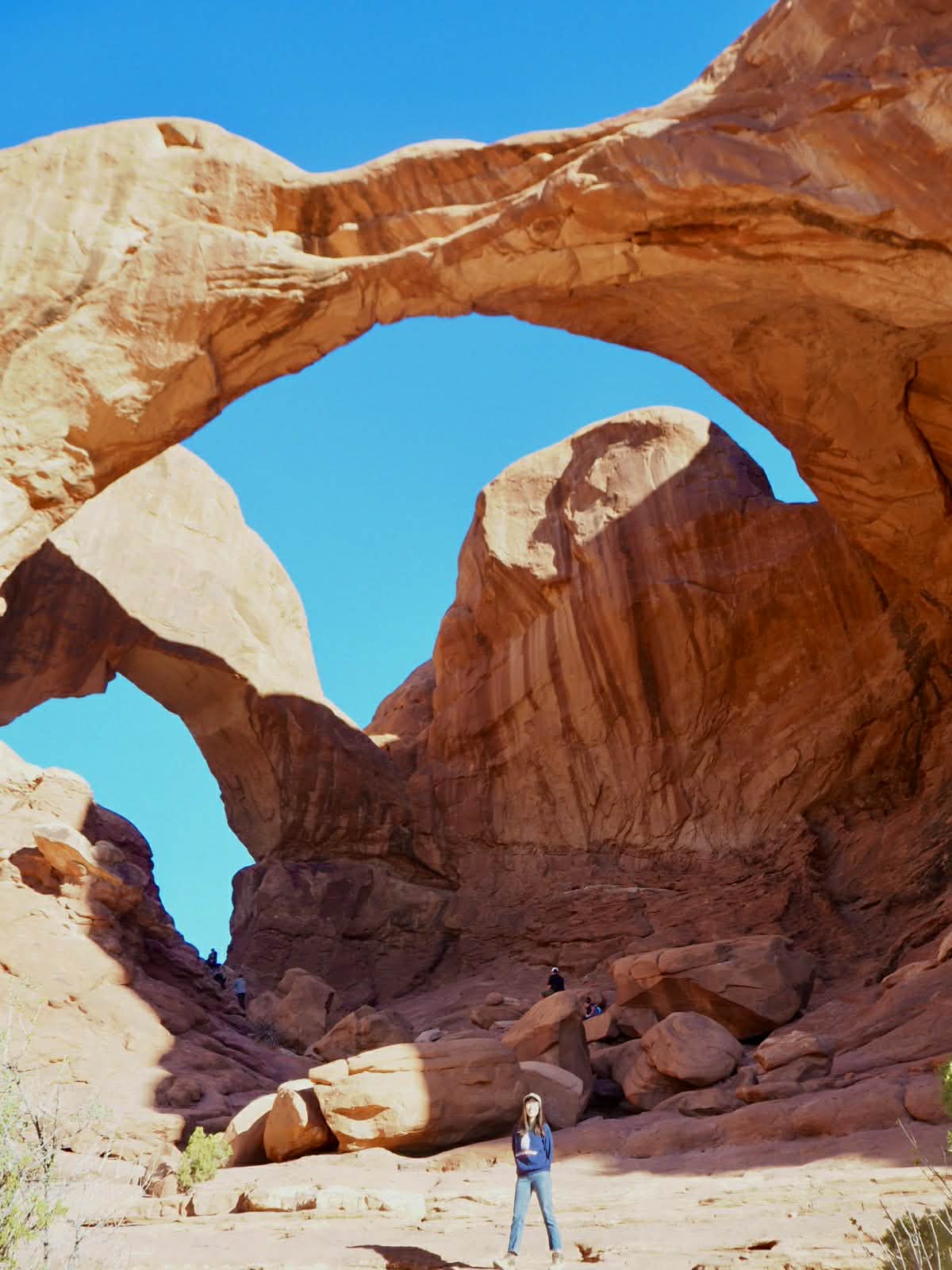 We hiked to North and South Window Arches and Turret Arch, enjoying the way the morning light hit the massive stone spans. We also explored Double Arch, which was incredible to stand beneath; the scale of the two arches looping together is truly awe-inspiring.