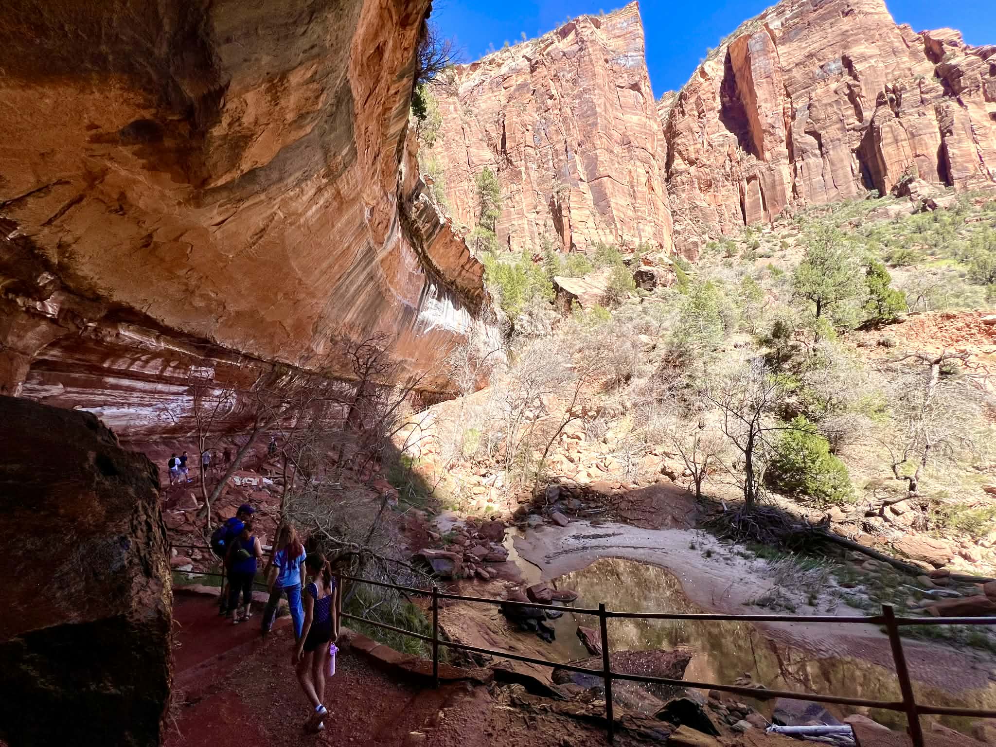 Once we were recharged, we attempted the hike to Hickman Bridge. However, since it was the middle of the afternoon, the heat became quite intense. The trail is very exposed, and at one point, I honestly felt like I might pass out! It was a painful climb in that sun, and we ultimately decided to turn back just before reaching the base of the bridge. We listened to our bodies and agreed that we had seen enough for one day.